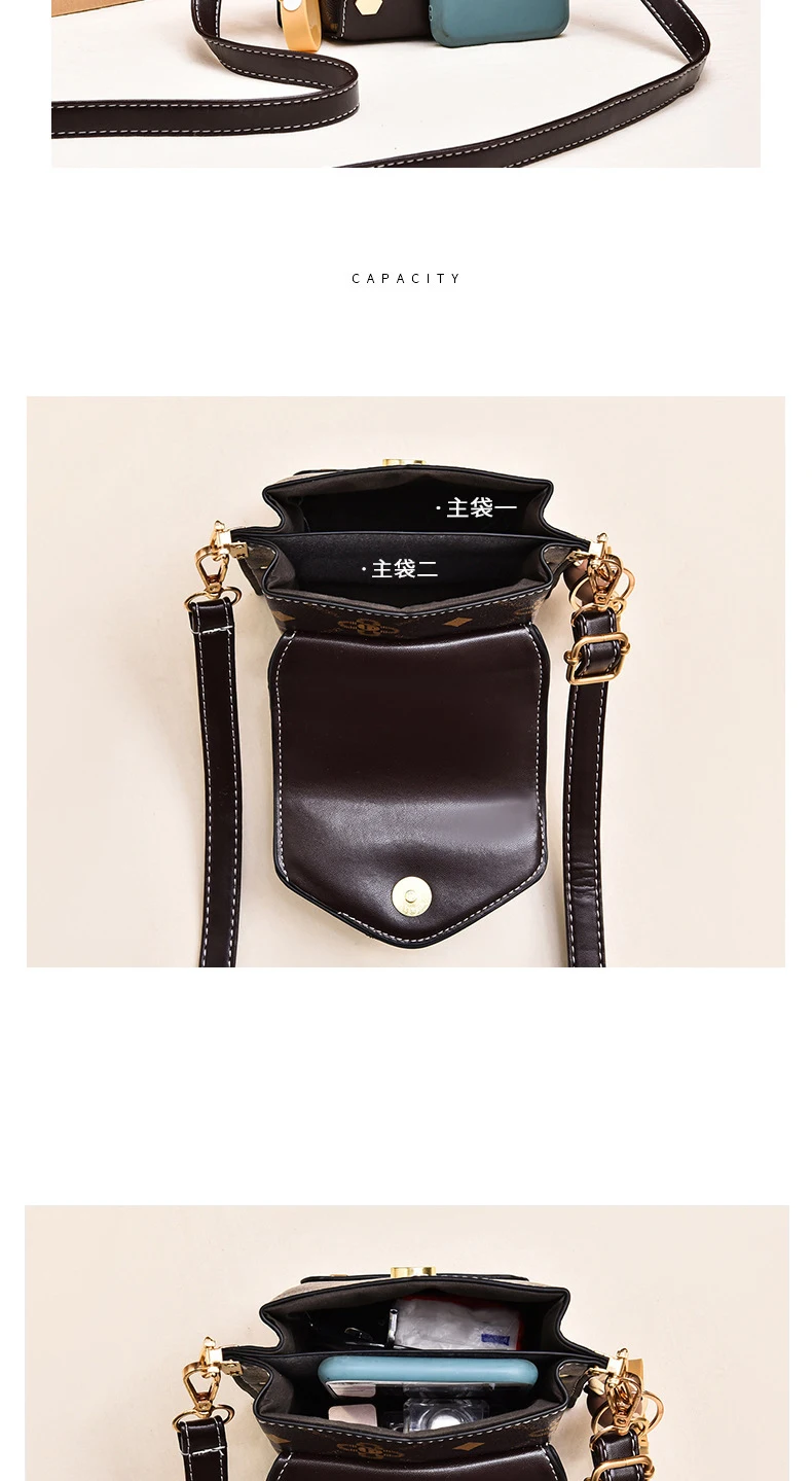 Fashion Women Pattern Shoulder Bag Hardware Chain Strap Color Block Messenger Handbag Composite Cross Body Bag
