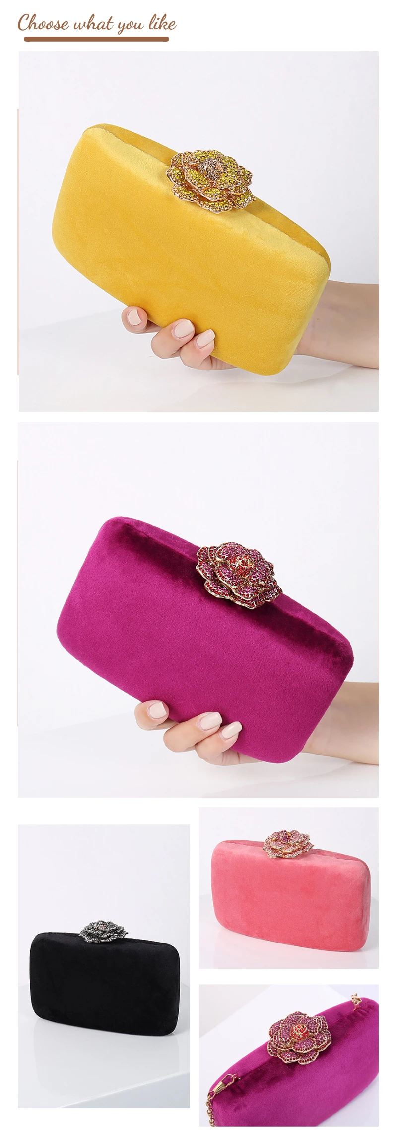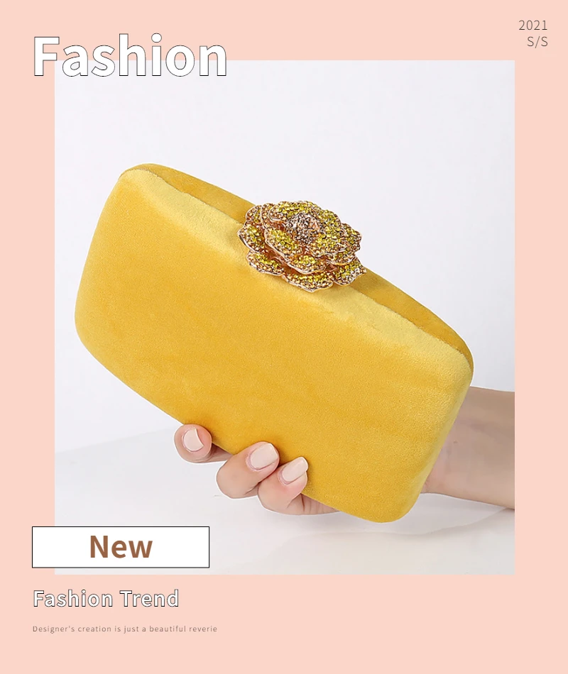 Fuzzy Tote Bag Bridal Party Clutch For Women Luxury Yellow Handbags Wedding Flannel Small Designer Bags Diamond Flower Purses